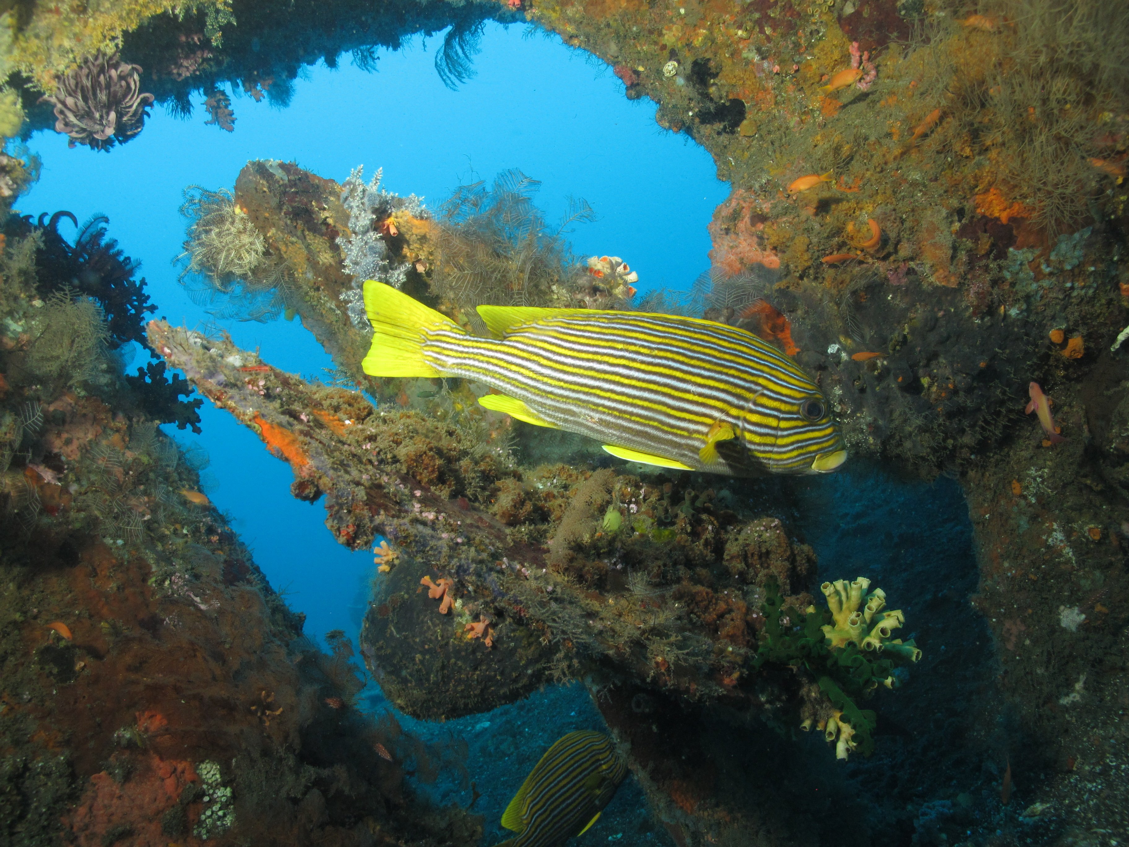 Na vraku se usadila hejna chňapalů, barakud, potkáte zde murény, pyskouny, bodloky, kanice a zavítají sem i žraloci. Na vraku také najdete min.12 druhů korálů. Jsou zde čistící stanice pro tvory z otevřeného oceánu a najdete zde i ,, školky,, mladých rybek. Krásný vrak na potápění.